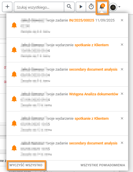 Pomaga to szybko wyczyścić sekcję powiadomień. Naciśnij ikonę dzwonka i wybierz opcję „Wyczyść wszystko” na dole tabeli.